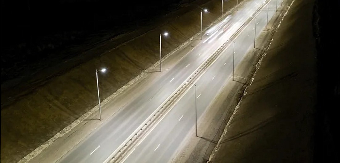 В 2020 в рамках национального проекта «Безопасные и качественные автомобильные дороги» на обходе Красноярска было установлено 198 опор наружного освещения и 206 светильников Pandora LED 555WP мощностью 160 и 180 Вт.